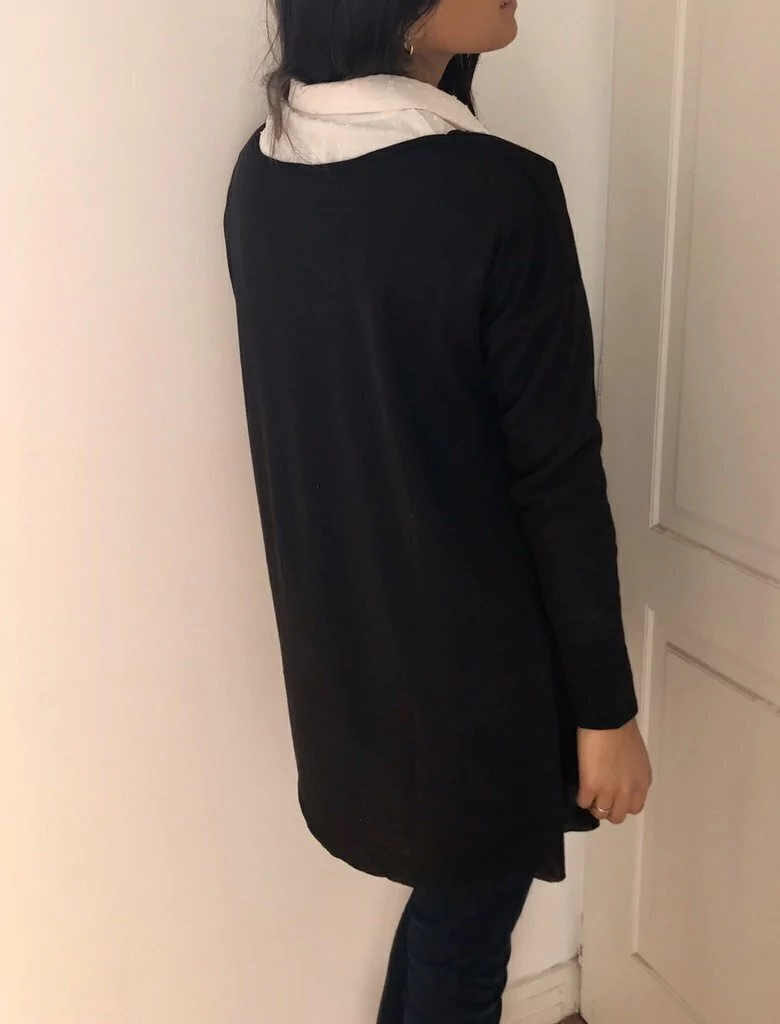 Sweater amplio de largo irregular. Hombro caido.